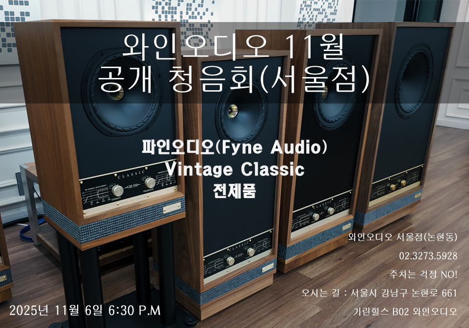 11월 공개청음회(서울점) 파인오디오(Fyneaudio) 빈티지 클래식 시리즈 총 집합!